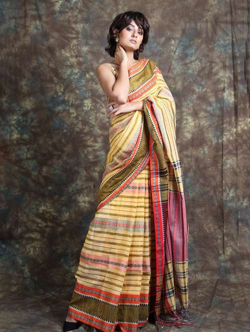 - » women's stripes yellow colored saree with blouse