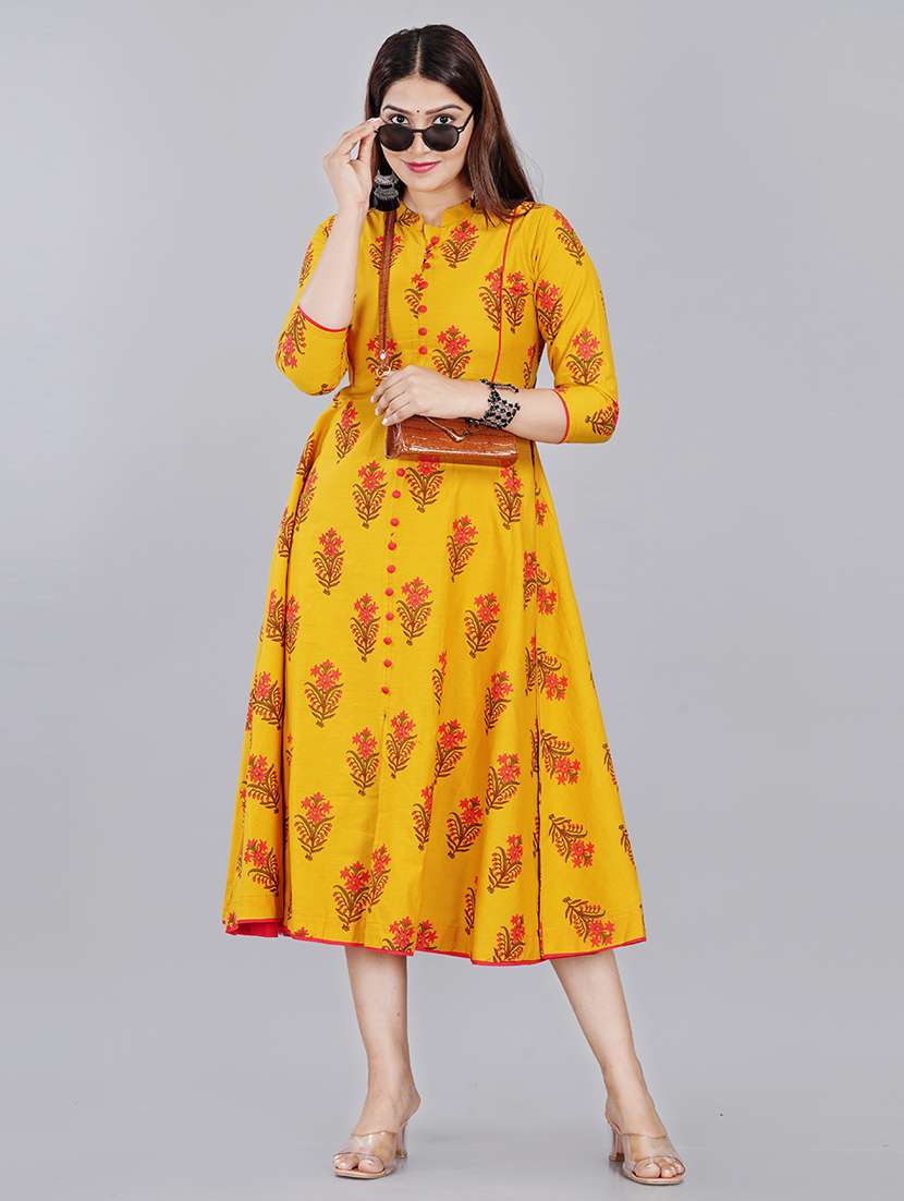 - » yellow cotton blend anarkali ethnic dress