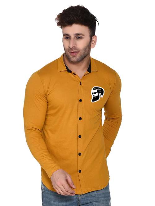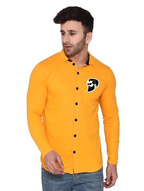 yellow cotton blend casual shirt