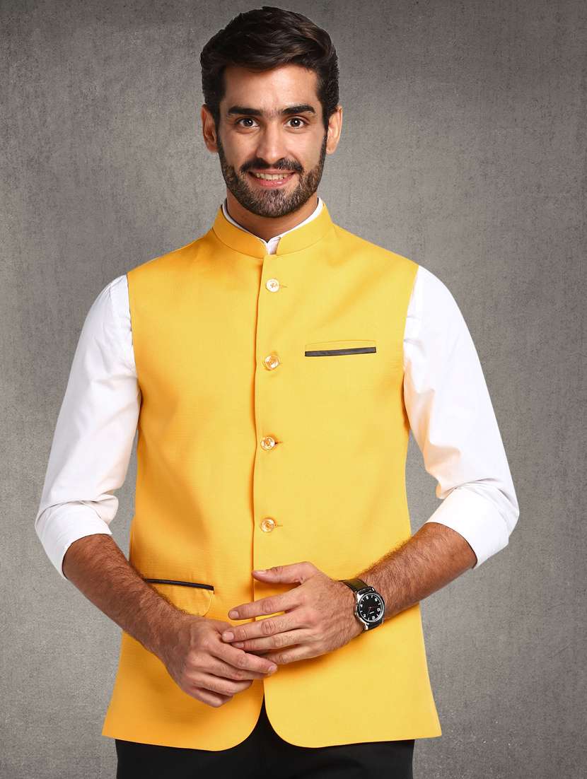 - » yellow solid nehru jacket