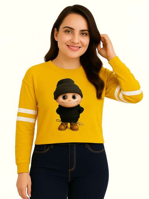 - Recreate your winter style with the all new frisky design options of sweatshirts available in yellow shades and hues to brighten up the chilly days.