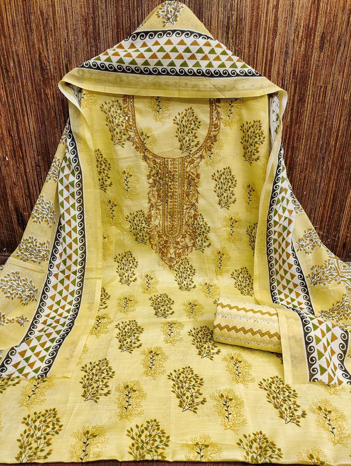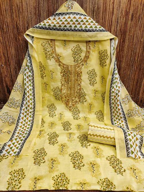 - Look ultra gorgeous in unstitched suits from Leeli Peeri Designer and grab these beautiful suits in yellow colour.