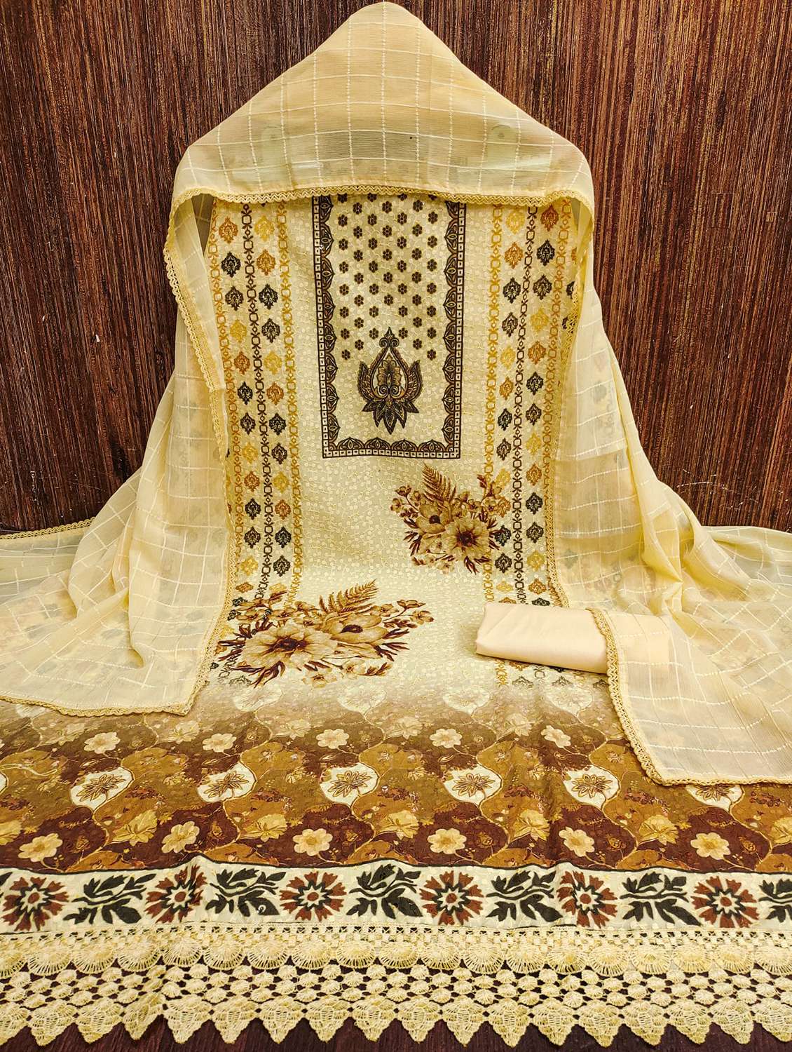 - Look ultra gorgeous in unstitched suits from Leeli Peeri Designer and grab these beautiful suits in yellow colour.