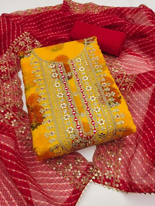 - Look ultra gorgeous in unstitched suits from Leeli Peeri Designer and grab these beautiful suits in yellow colour.