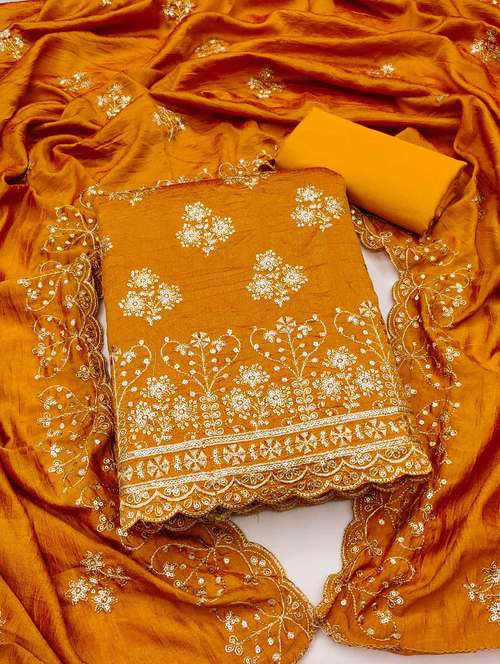 - Look ultra gorgeous in unstitched suits from Leeli Peeri Designer and grab these beautiful suits in yellow colour.