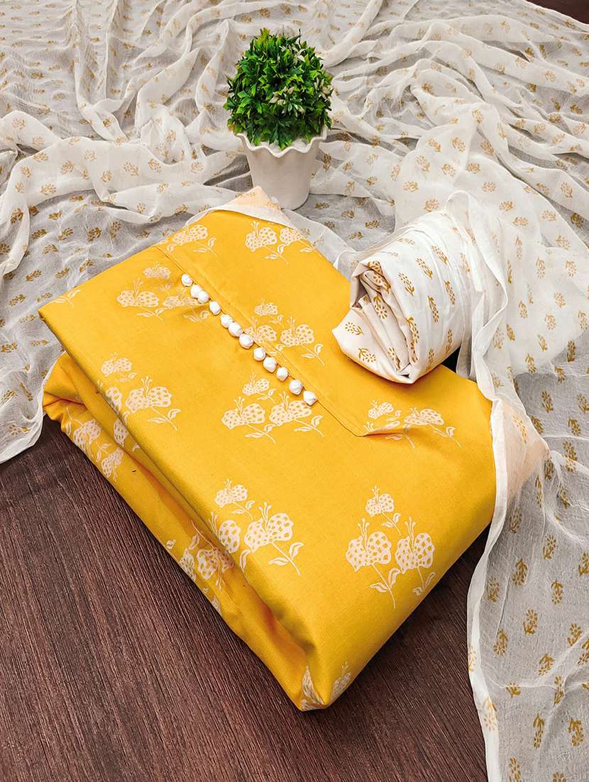- Look ultra gorgeous in unstitched suits from Lilots and grab these beautiful suits in yellow colour.