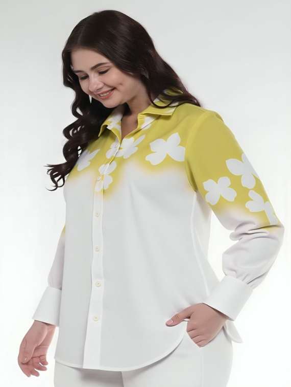 women floral print long sleeve collared shirt