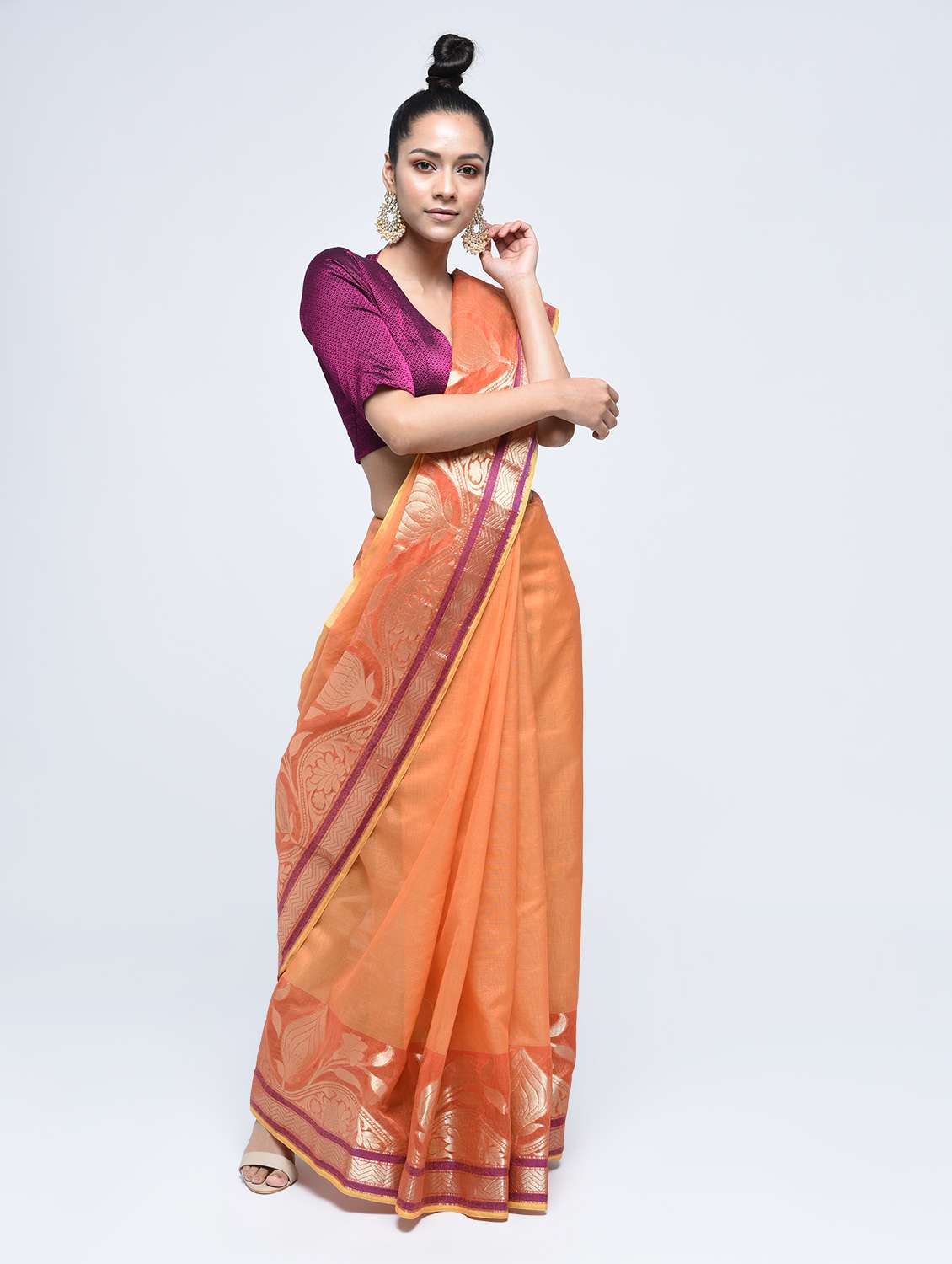 floral zari border banarasi saree with blouse