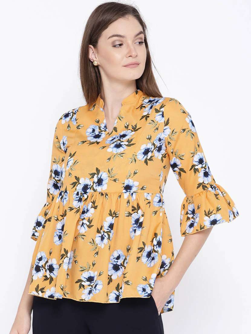 - » yellow printed three quarter sleeve top