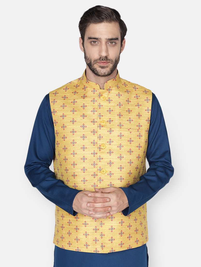 - » yellow ethnic motif printed nehru jacket