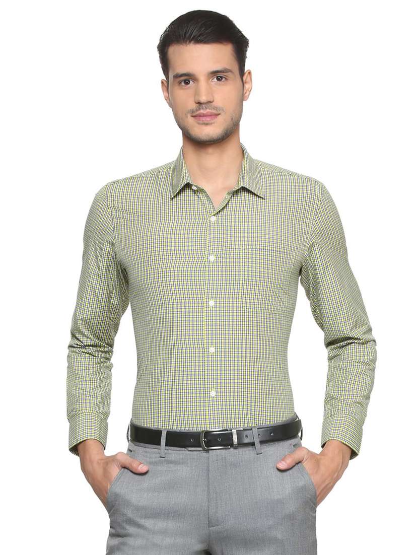 yellow cotton blend formal shirt