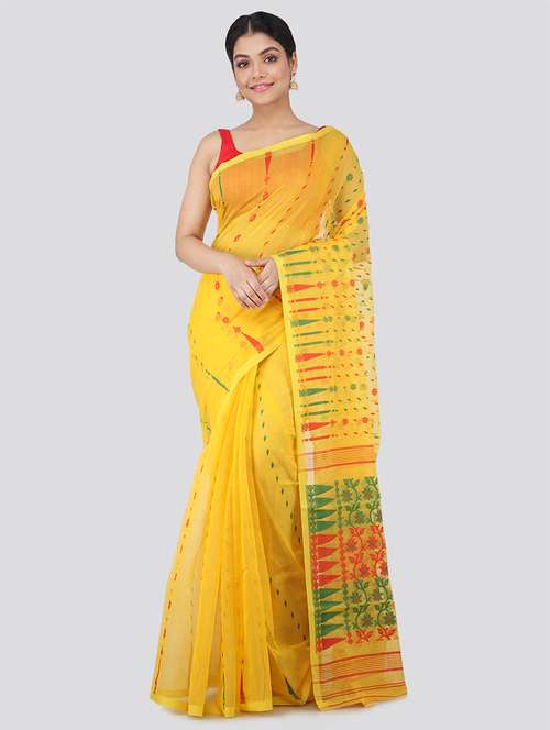 - » yellow cotton blend jamdani saree