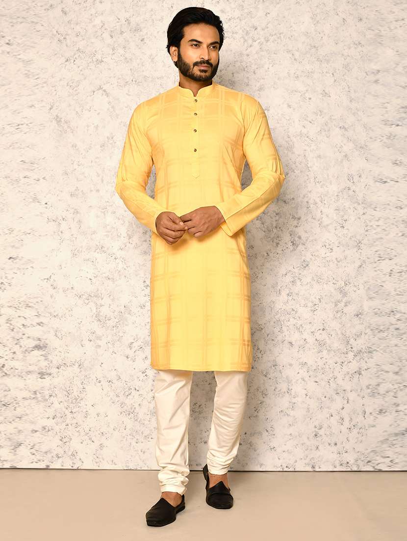 yellow cotton blend kurta pyjama ethnic wear set - 20881575 - Very Small Image - 1