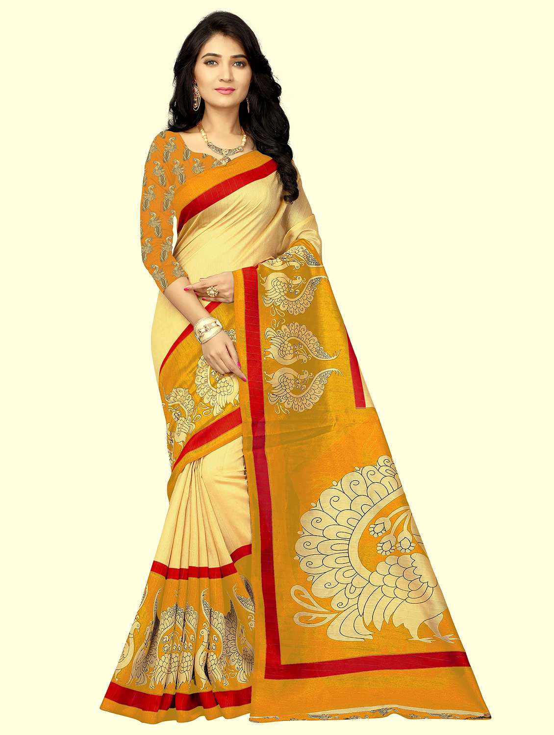 yellow printed saree with blouse - 21299825 - Very Small Image - 1