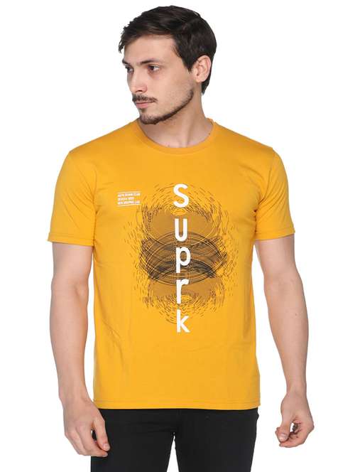 - » yellow short sleeves front print t-shirt