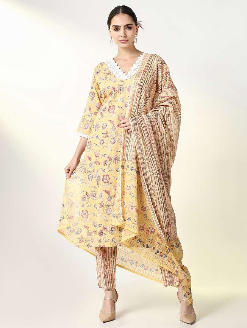 women floral kurta pant set with dupatta