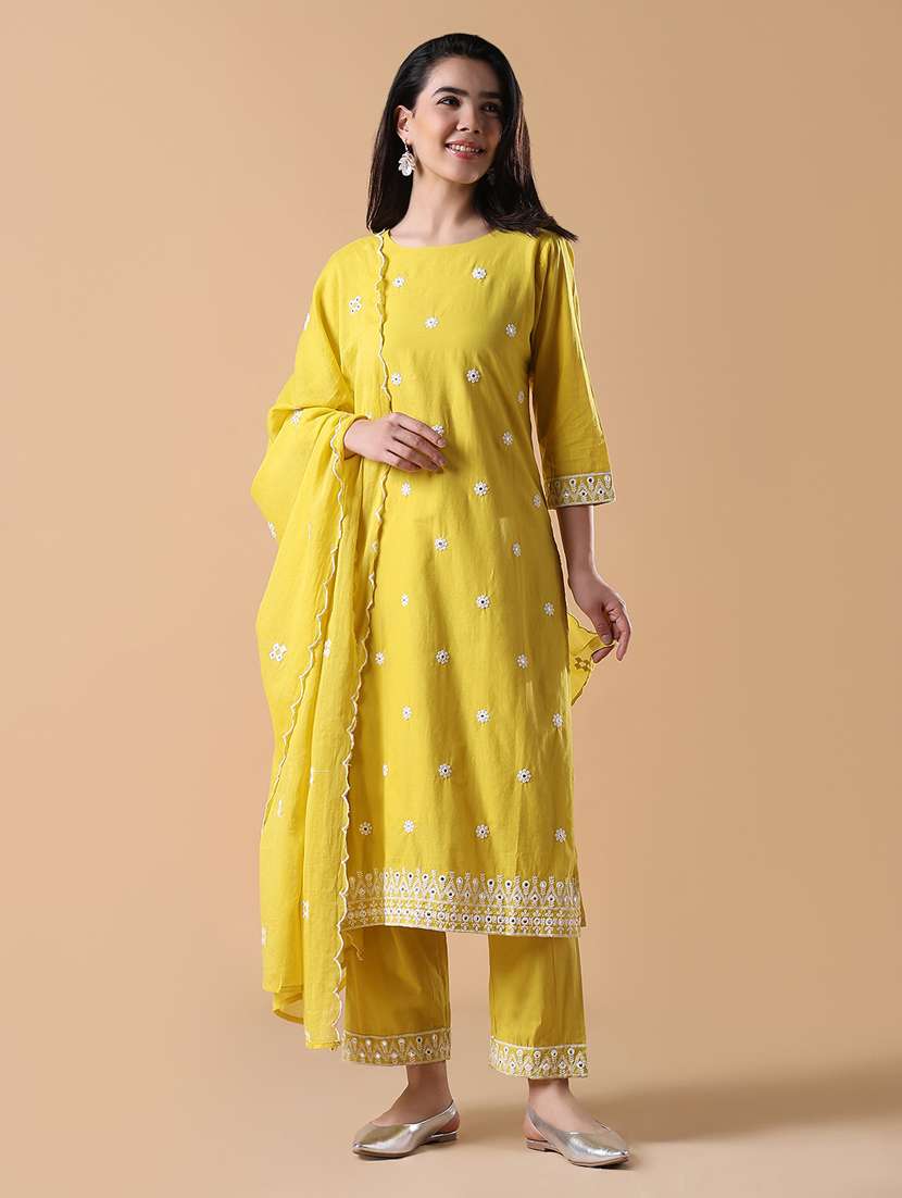 women three quarter sleeve kurta pant with dupatta set