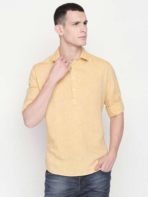 yellow cotton blend short kurta