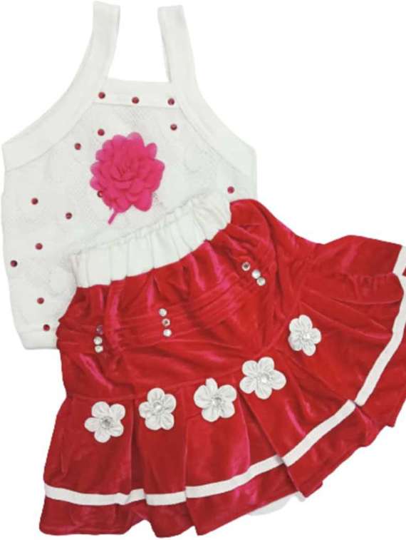- Browse through the huge collection of party wear twin sets and jump suits for girls in red colors and designs to make your young lady look the fashionista that she is.