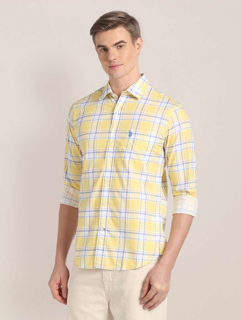 yellow cotton blend casual shirt