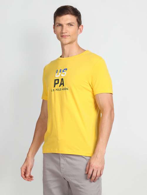 yellow cotton blend chest print t-shirt