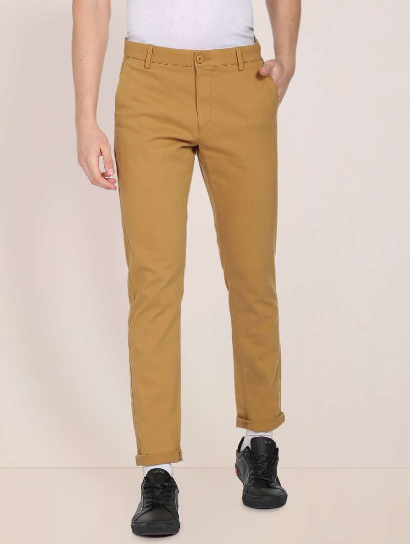 solid brown flat front casual trouser