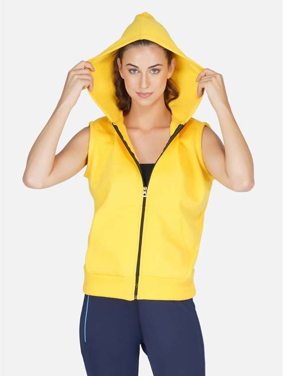 - » yellow solid sleeveless hooded jacket