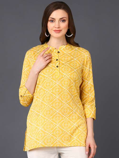 yellow bandhani print a-line top