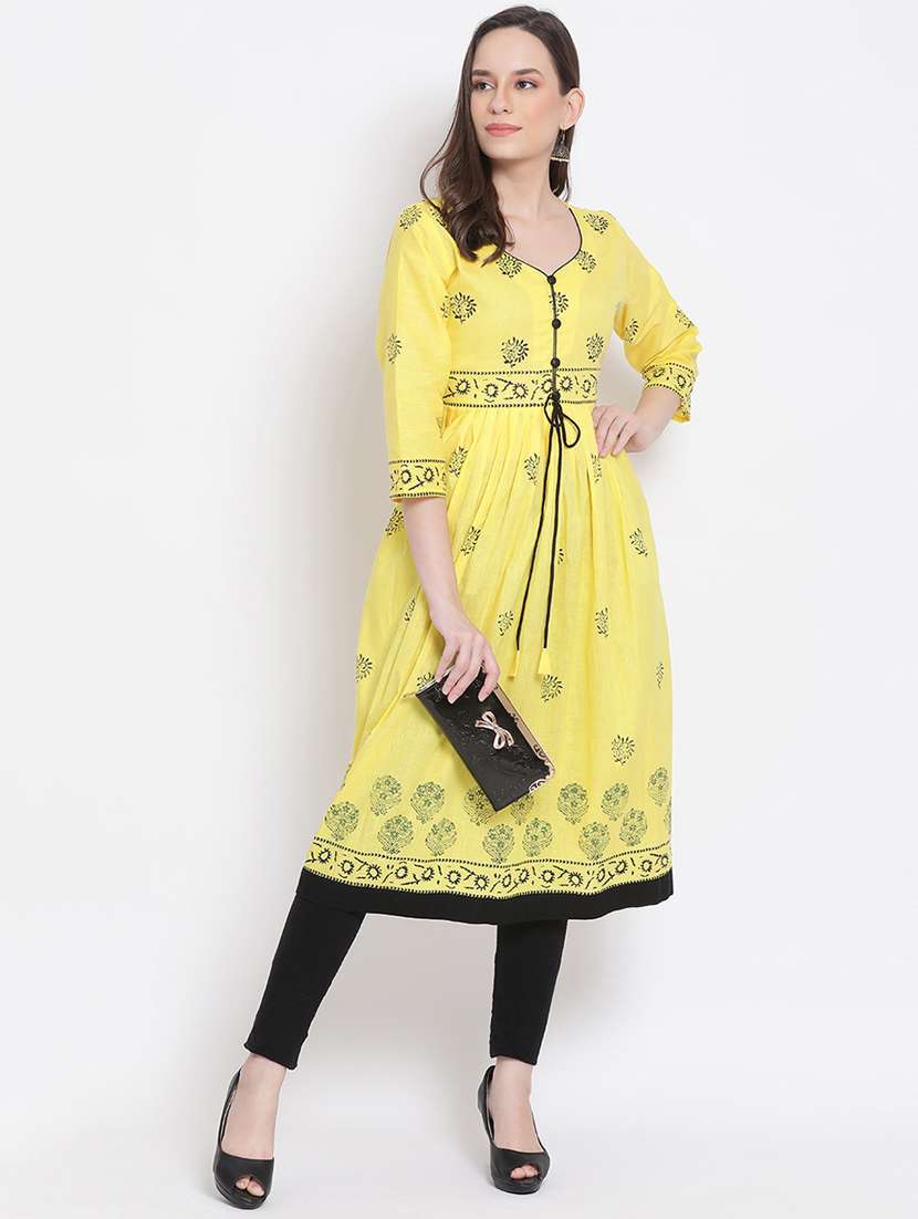 yellow cotton blend anarkali kurta - 17948951 - Very Small Image - 1