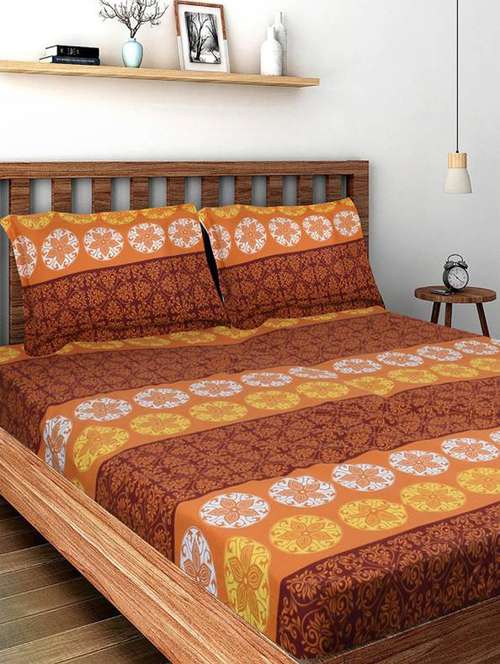 printed cotton double bed sheet with 2 pillow covers by bombay dyeing