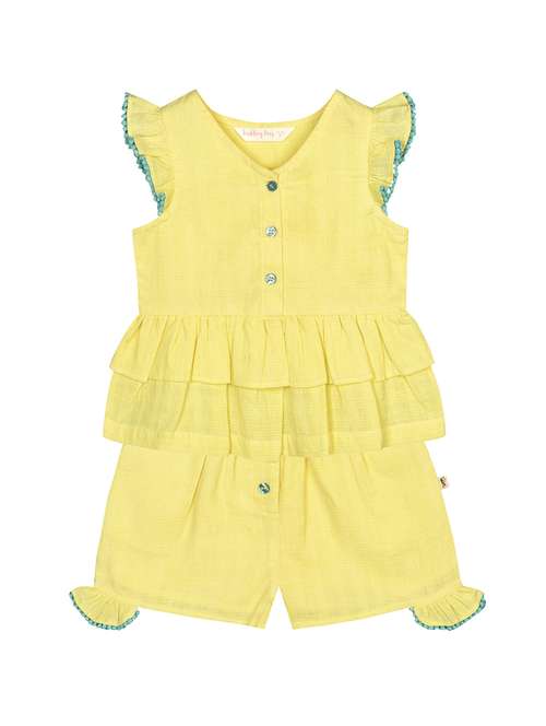 yellow solid shorts sets