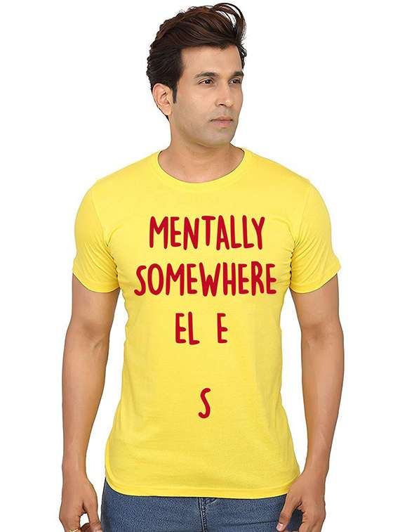 - » men front print round neck t-shirt