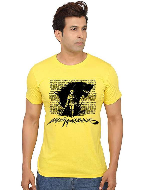 men round neck front print cotton t-shirt