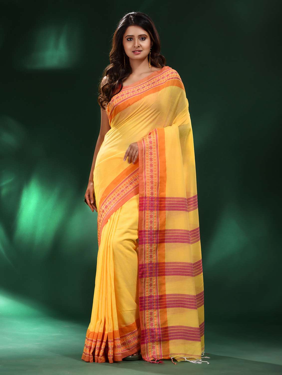 women's self design yellow colored saree with blouse