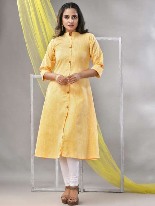 - » women yellow cotton a-line kurta