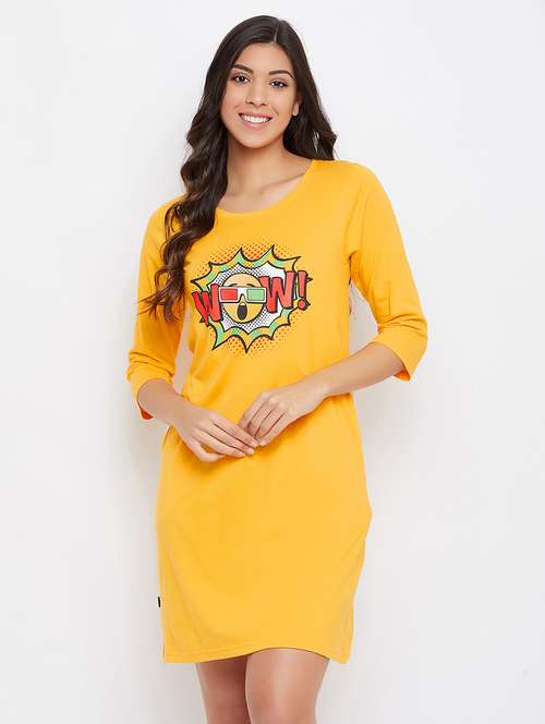 yellow graphic printed cotton sleepshirts