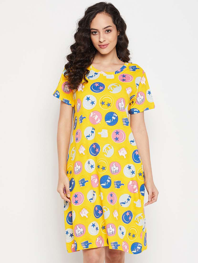 yellow printed short sleeves sleepshirts