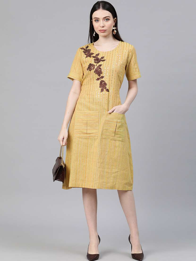- » women striped embroidered short sleeve knee length dress