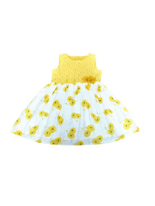 yellow printed flared frock