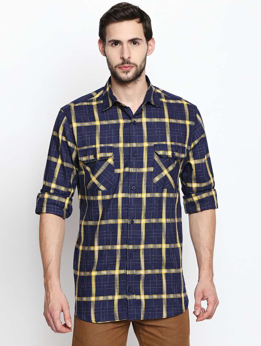 - » navy blue checkered casual shirt