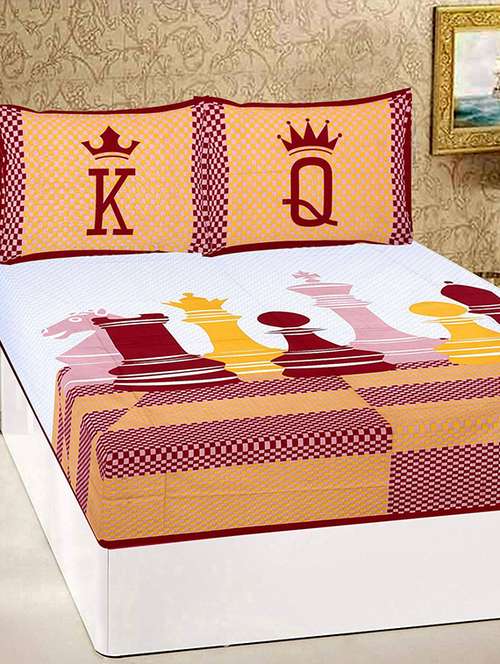 - » divamee jaipuri print cotton double bedsheet with 2 pillow covers -color resistance-size 85x90 inchs
