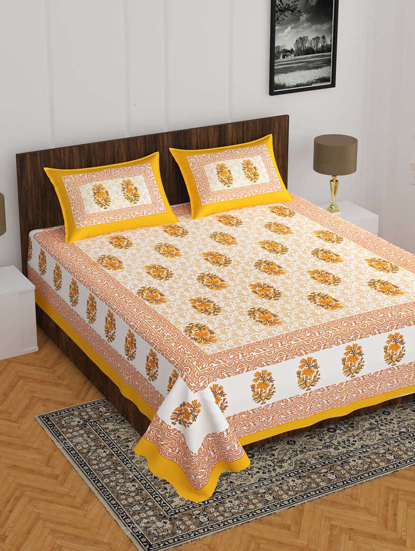 - » divamee jaipuri print cotton double bedsheet with 2 pillow covers -color resistance