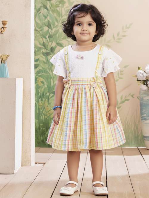 - » girls checkered round neck dress