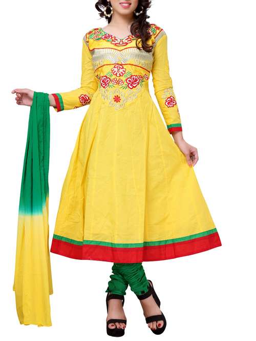 - » yellow cotton embroidered semi stitched anarkali suit set