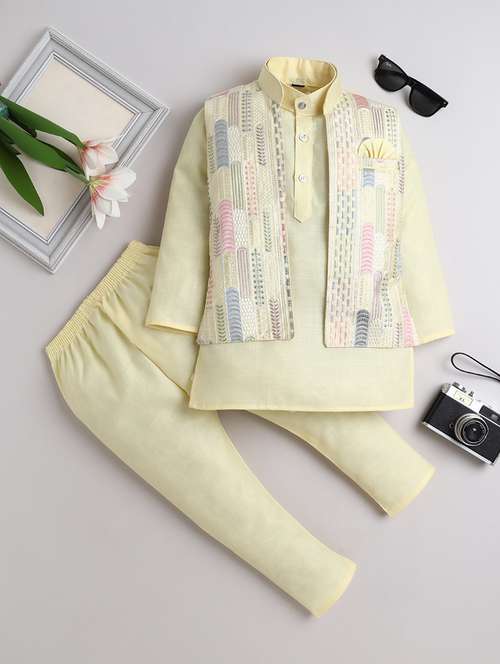 - Make your boy look stylish and confident in FOURFOLDS brands in yellow kurtas and kurta sets in a variety of designs to choose from.