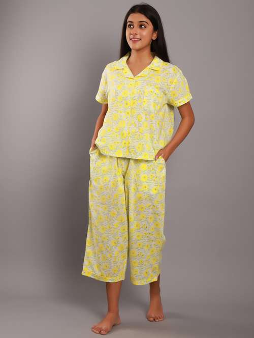 - After a long tiring day, slip into something homely, shop for the all-new collection of nightwear sets for ladies in S sizes and gorgeous yellow designs and colors.