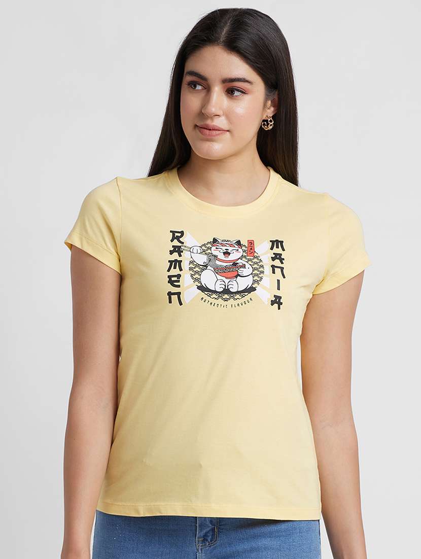 women's chest print round neck t-shirt - 19781374 - Very Small Image - 1