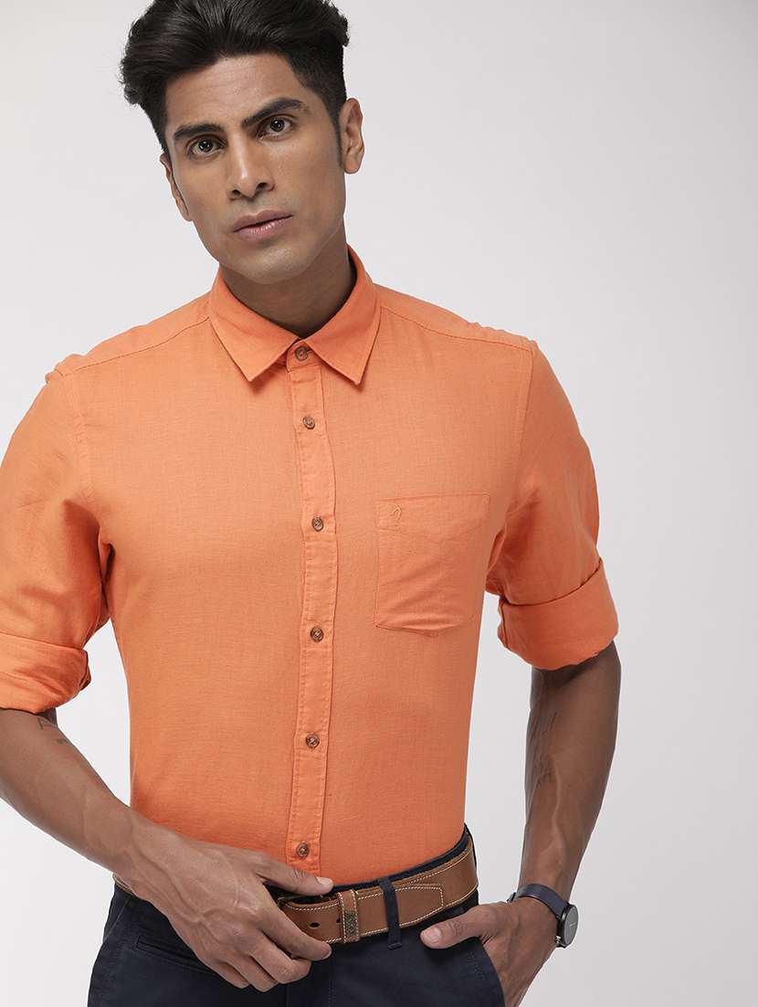 - Be a head turner by wearing this casual shirt from Indian Terrain and grab it in orange colour.