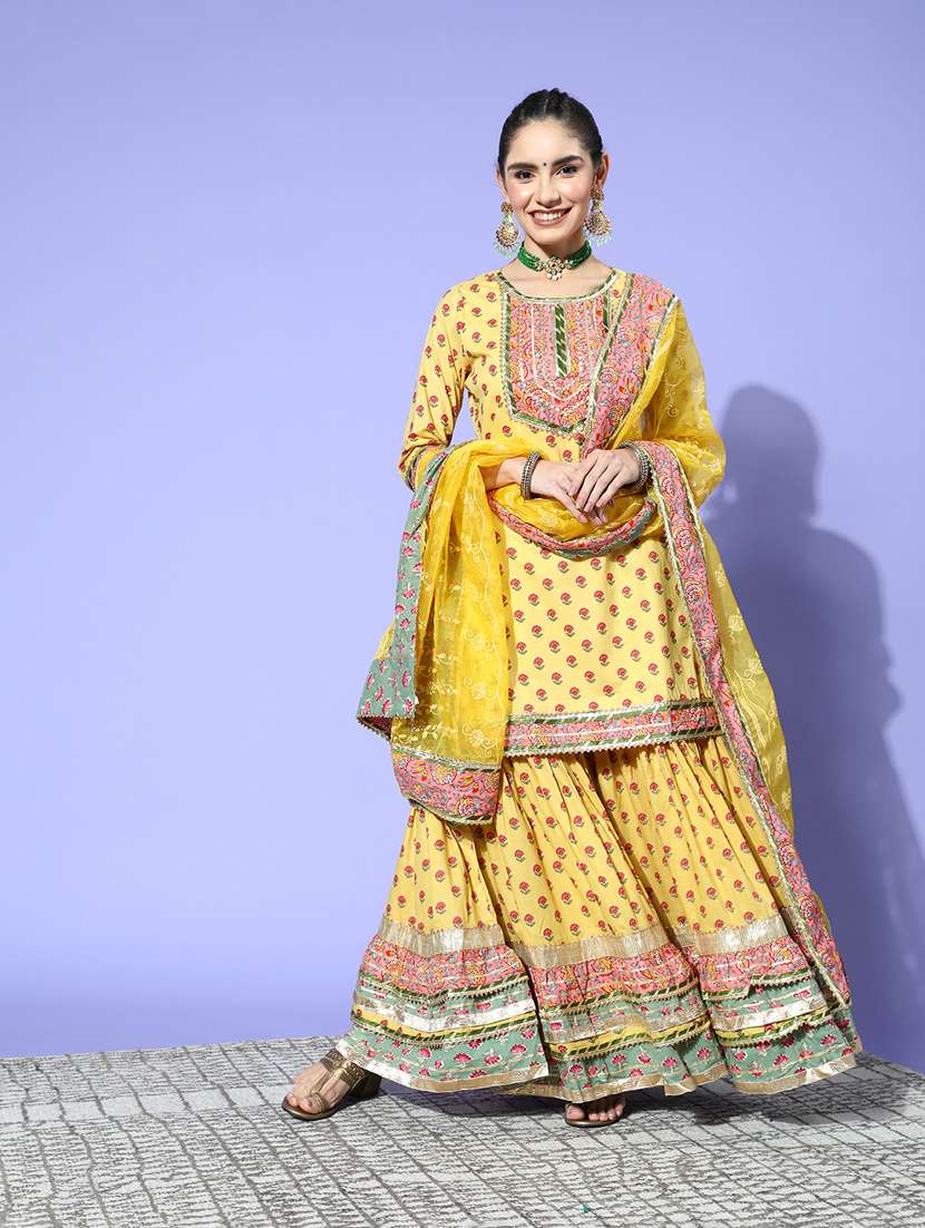 round neck kurta sharara set