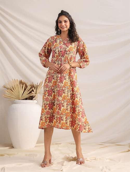 - Looking for some awesome collection of dresses? Well, lay your hands on this dress from janasya and also get the option of choosing from beige colour.